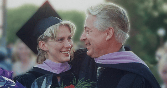 Dr. Jaleena Fischer-Jessop bei ihrer Abschlussfeier an der Loma Linda University zusammen mit ihrem Vater, Dr. Dan Fischer.