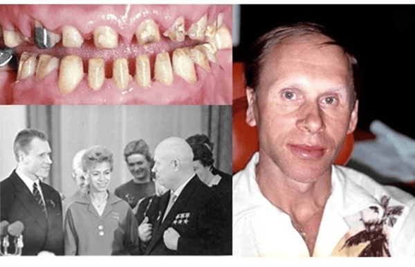 Oleg Protopopov vor der vollständigen Gebissrekonstruktion durch Dr. Dan Fischer (Gründer von Ultradent Products).